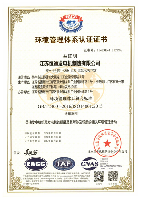 恒通發電機榮譽資質